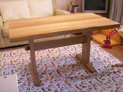 ベンチチェスト、増え続けていくおもちゃの収納にとても感謝しています。遊びに来てくれた友達の評判もよく、「手作りの温かい木の感触と名前入りのオリジナルな感じ」がみんな良いと言ってくれます。フタがバタンと閉まらないよう金具をつけてもらったことにも感謝しています。というのも、2歳の娘なのですが、なんと大人でも思いあのフタをひとりでよく持ち上げてはおもちゃを出して遊んでいるのですから。もちろんあの家具は嫁入り道具として大切に使って、結婚してもつきあってもらうつもりです。ありがとうございました。 |