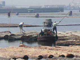 みなさん、材木を扱う港で、丸太が浮かんでいるのをご覧になったことはありま